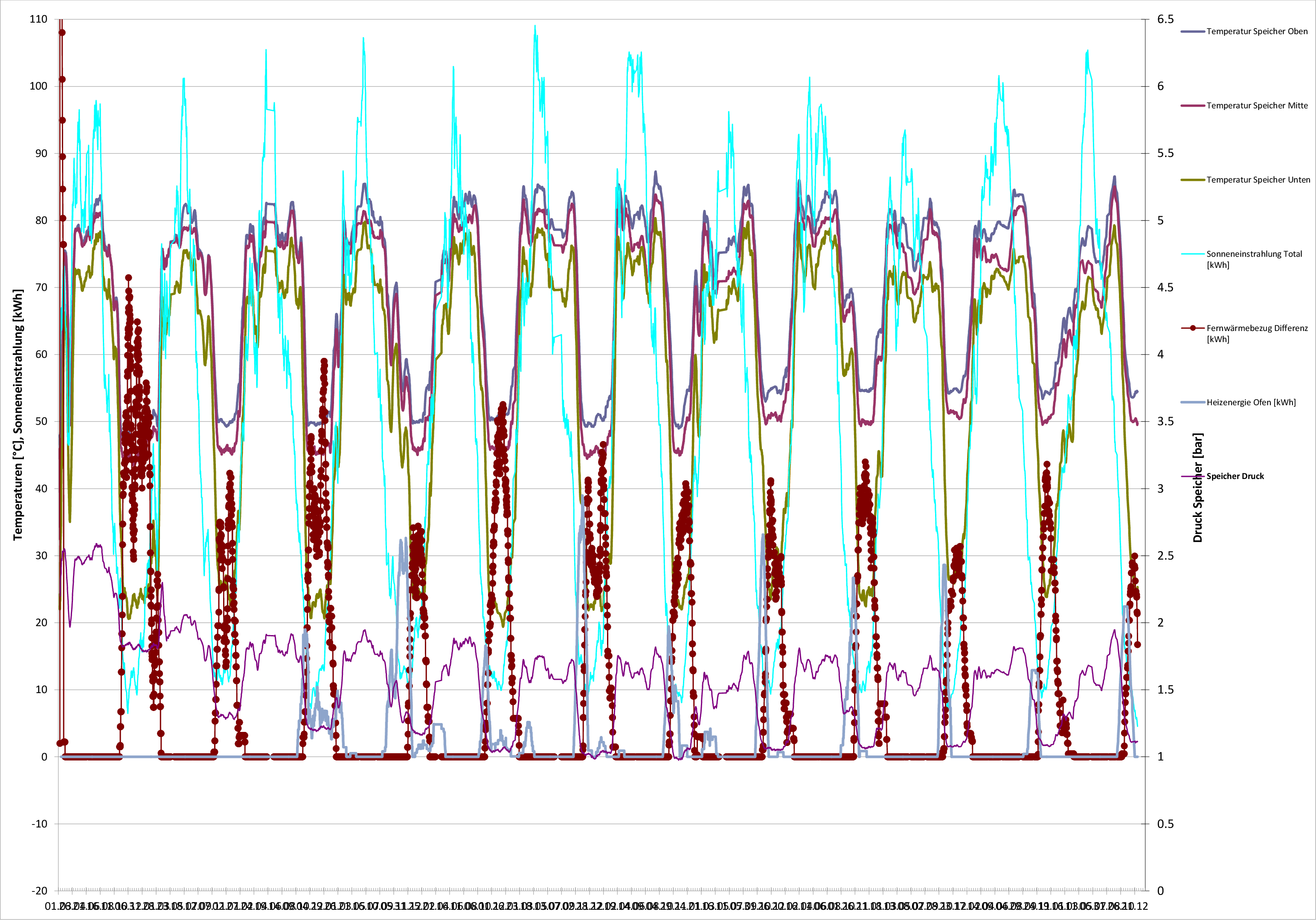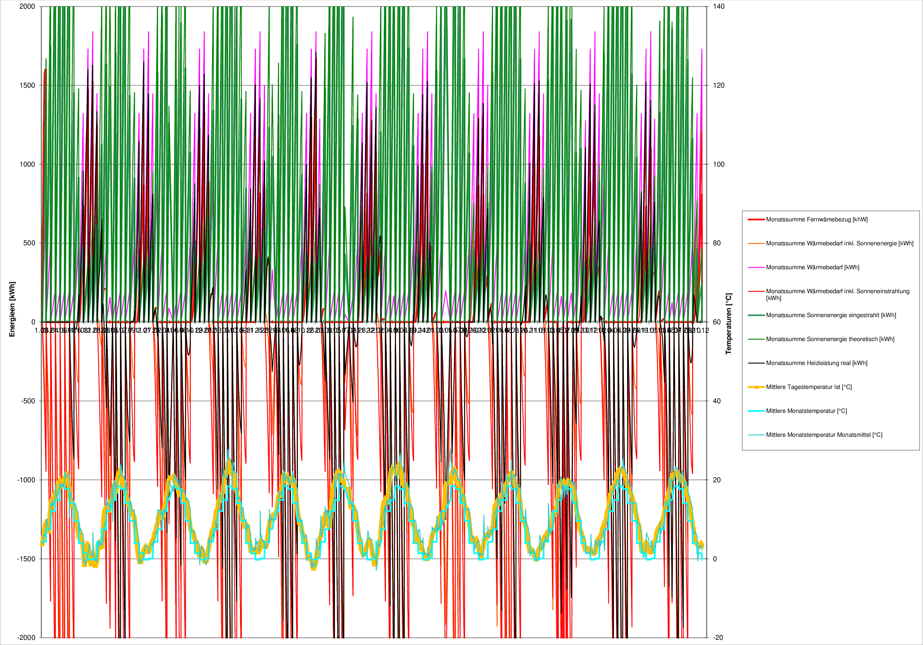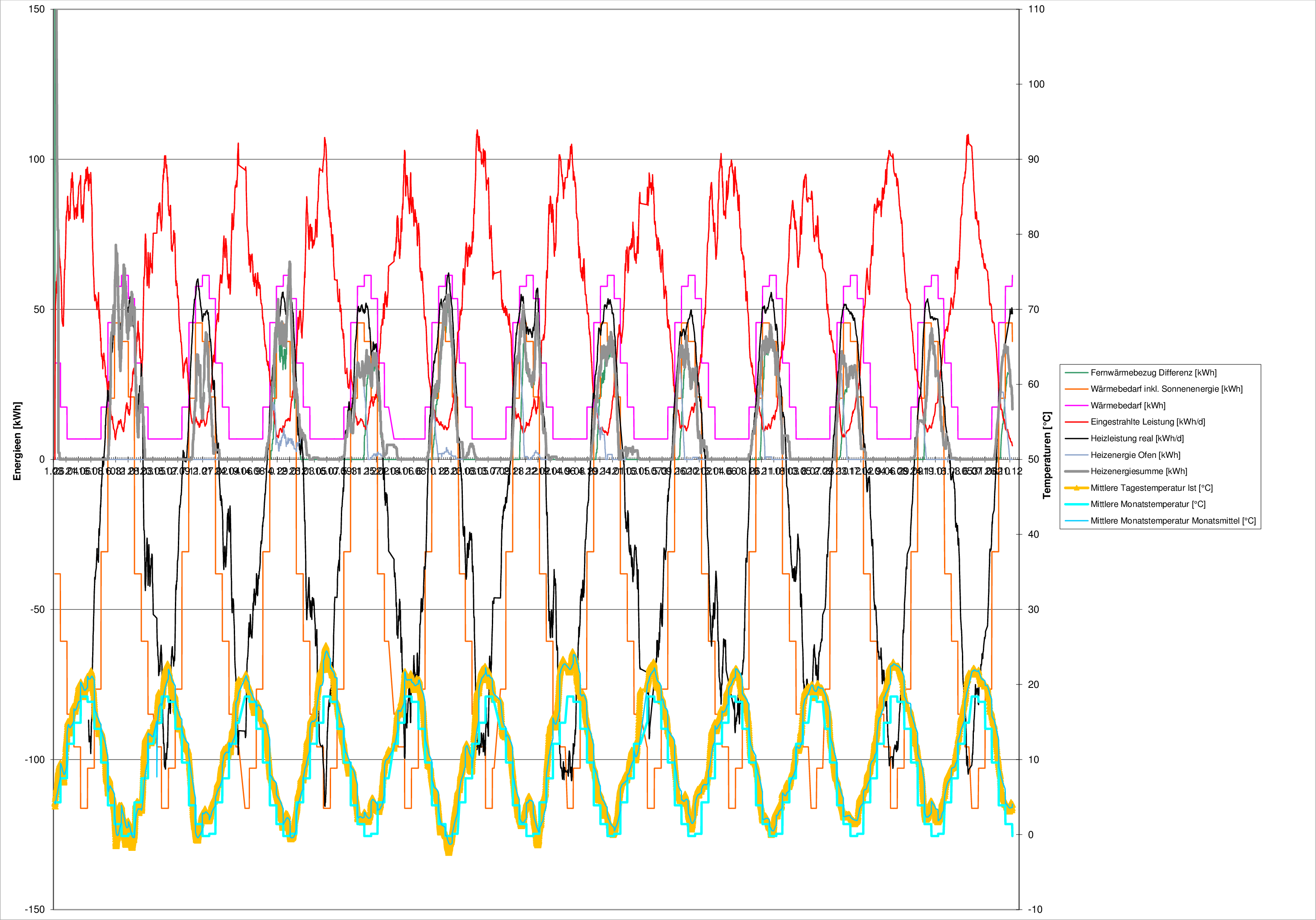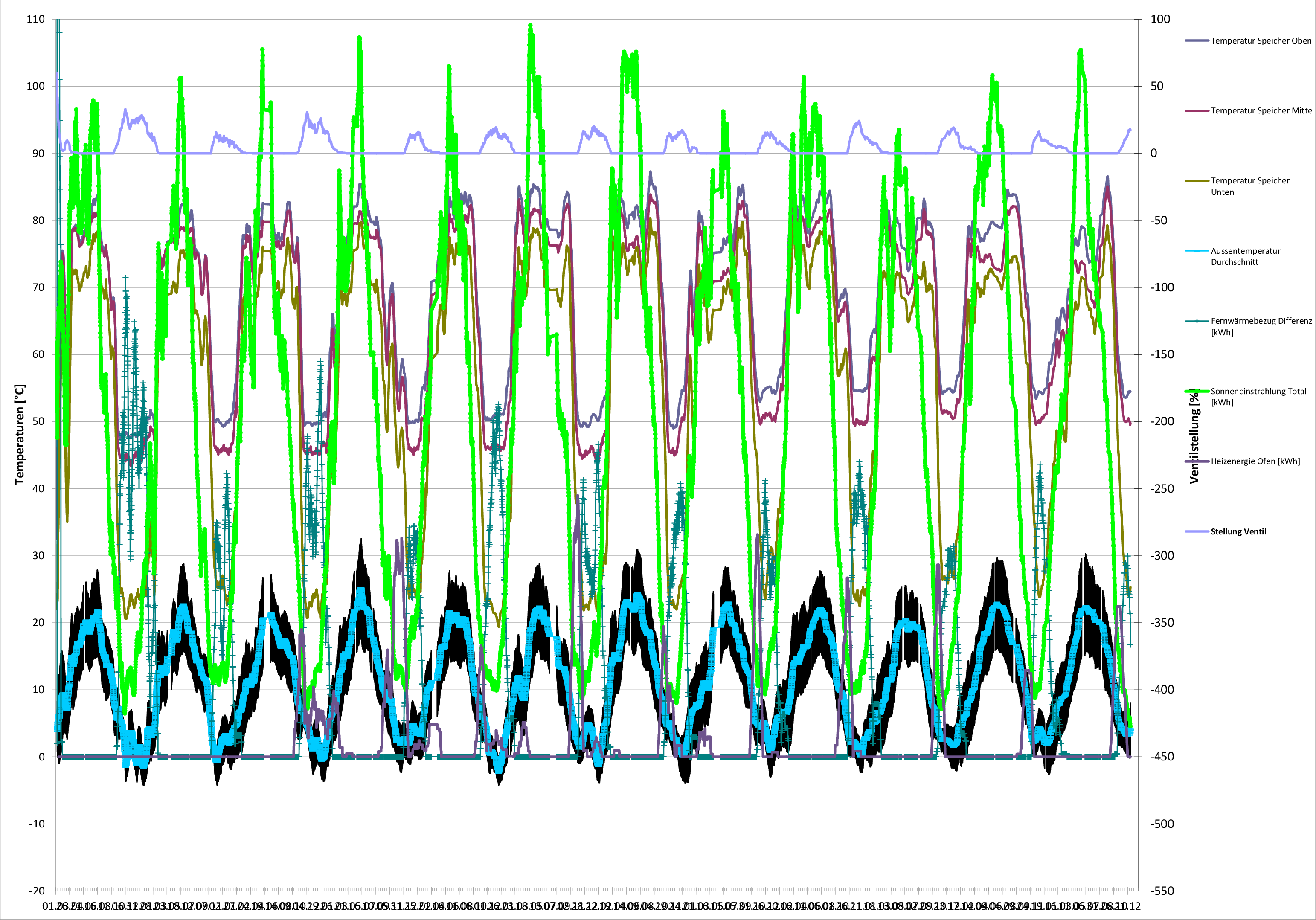 Temperaturen Speicher Energiebezug Fernwärme Sonneneinstrahlung gemittelt