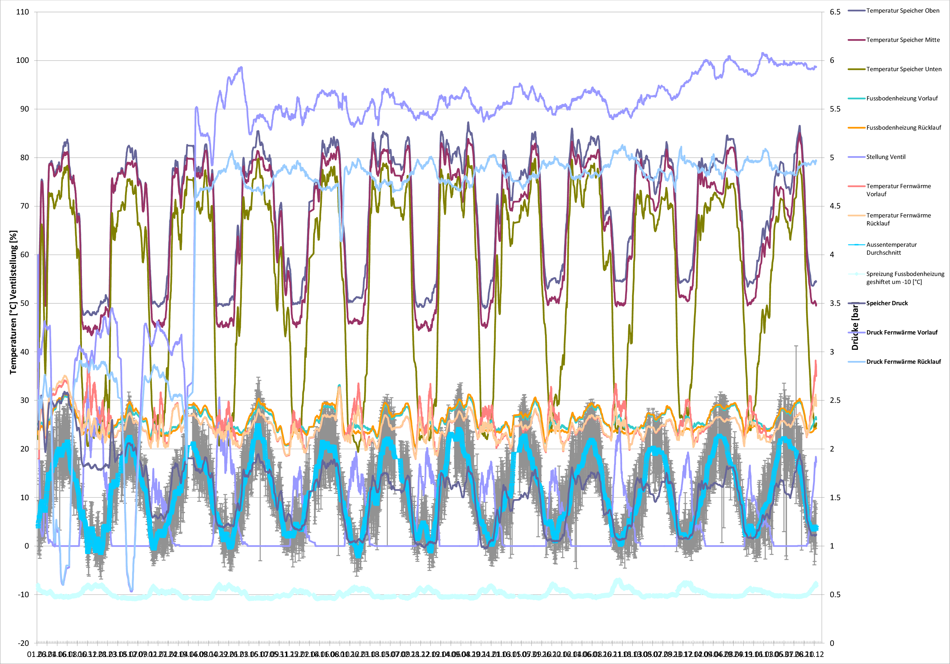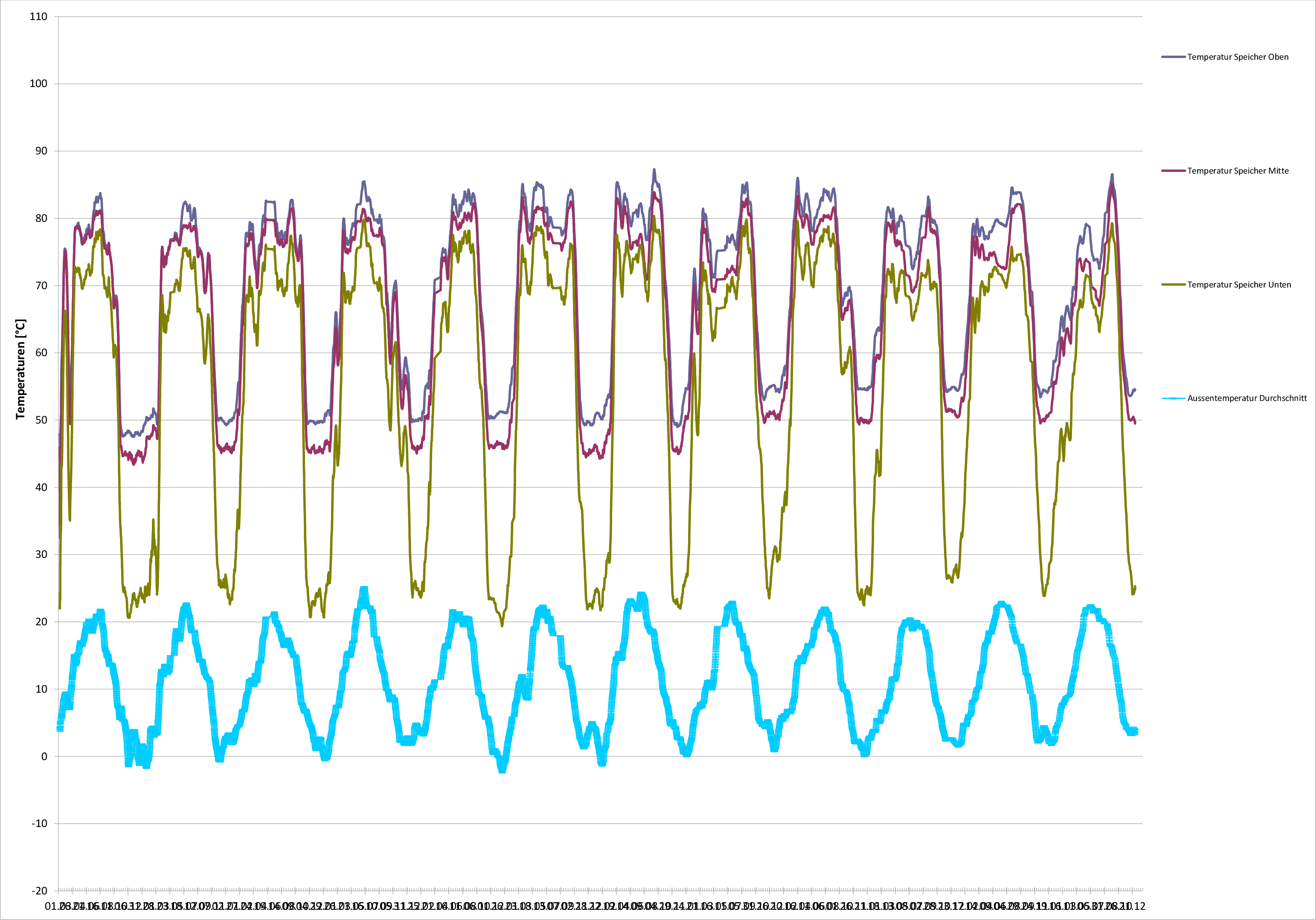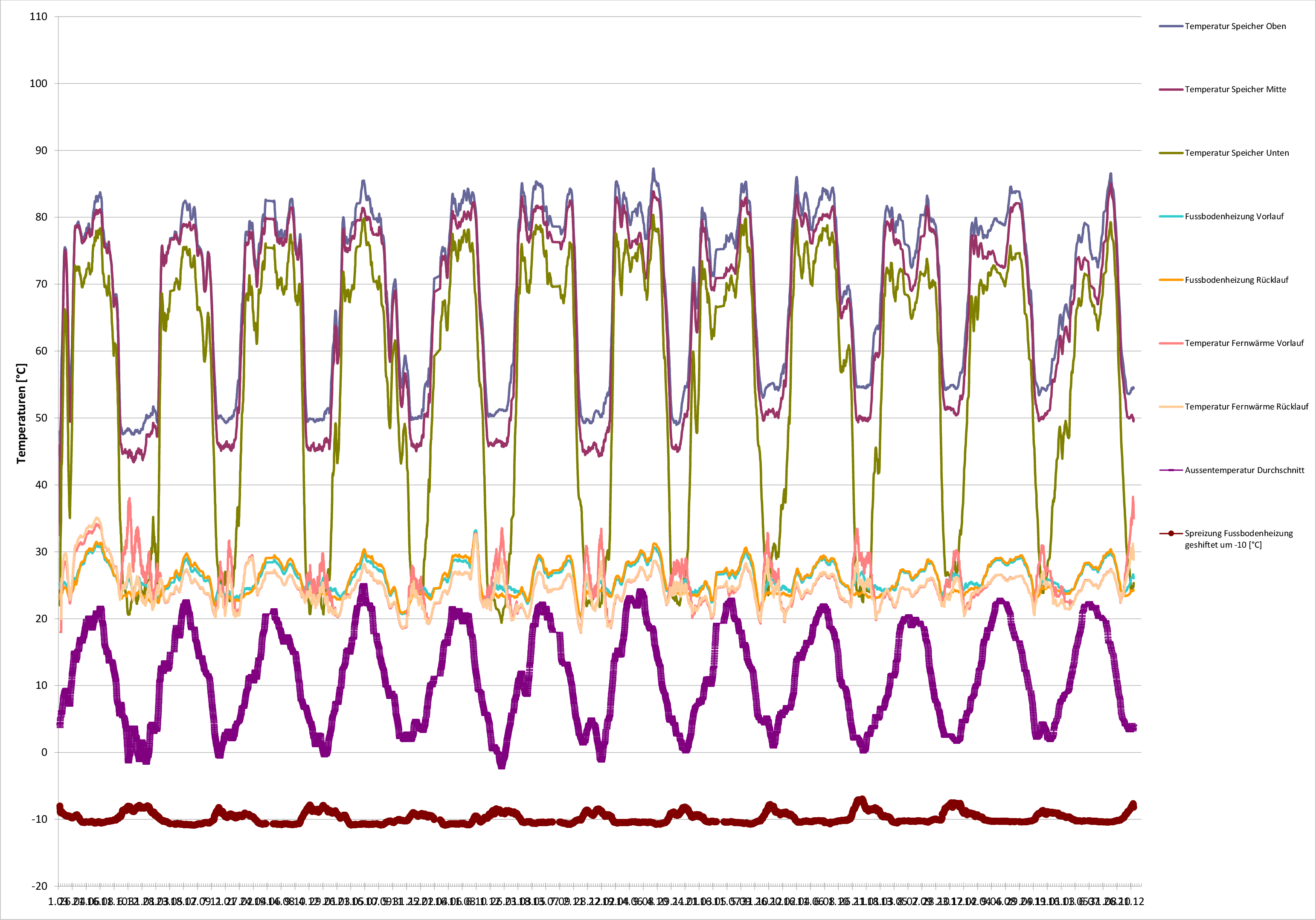 Temperaturen Speicher Energiebezug Fernwärme Sonneneinstrahlung gemittelt