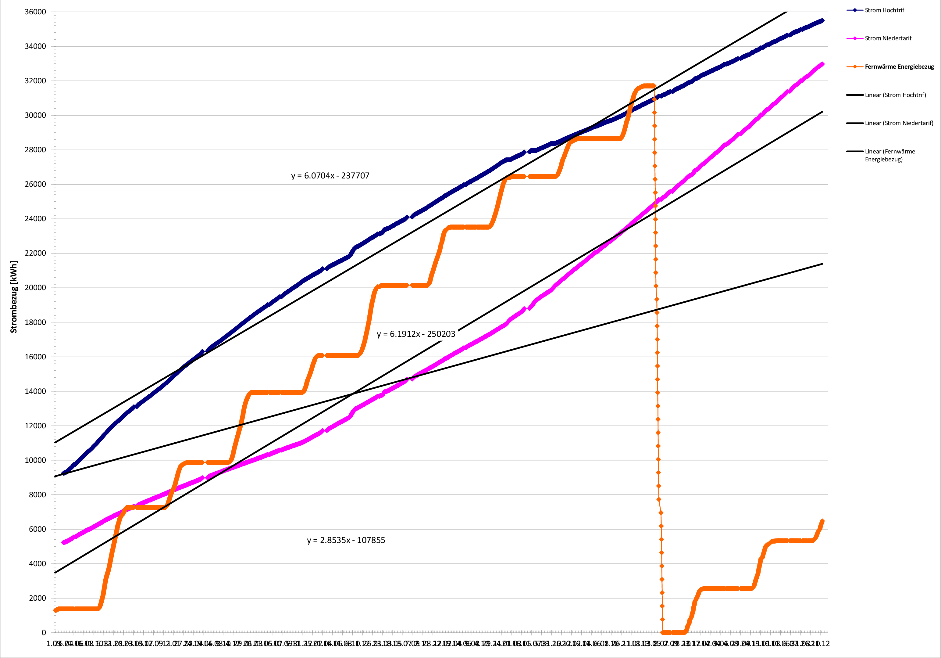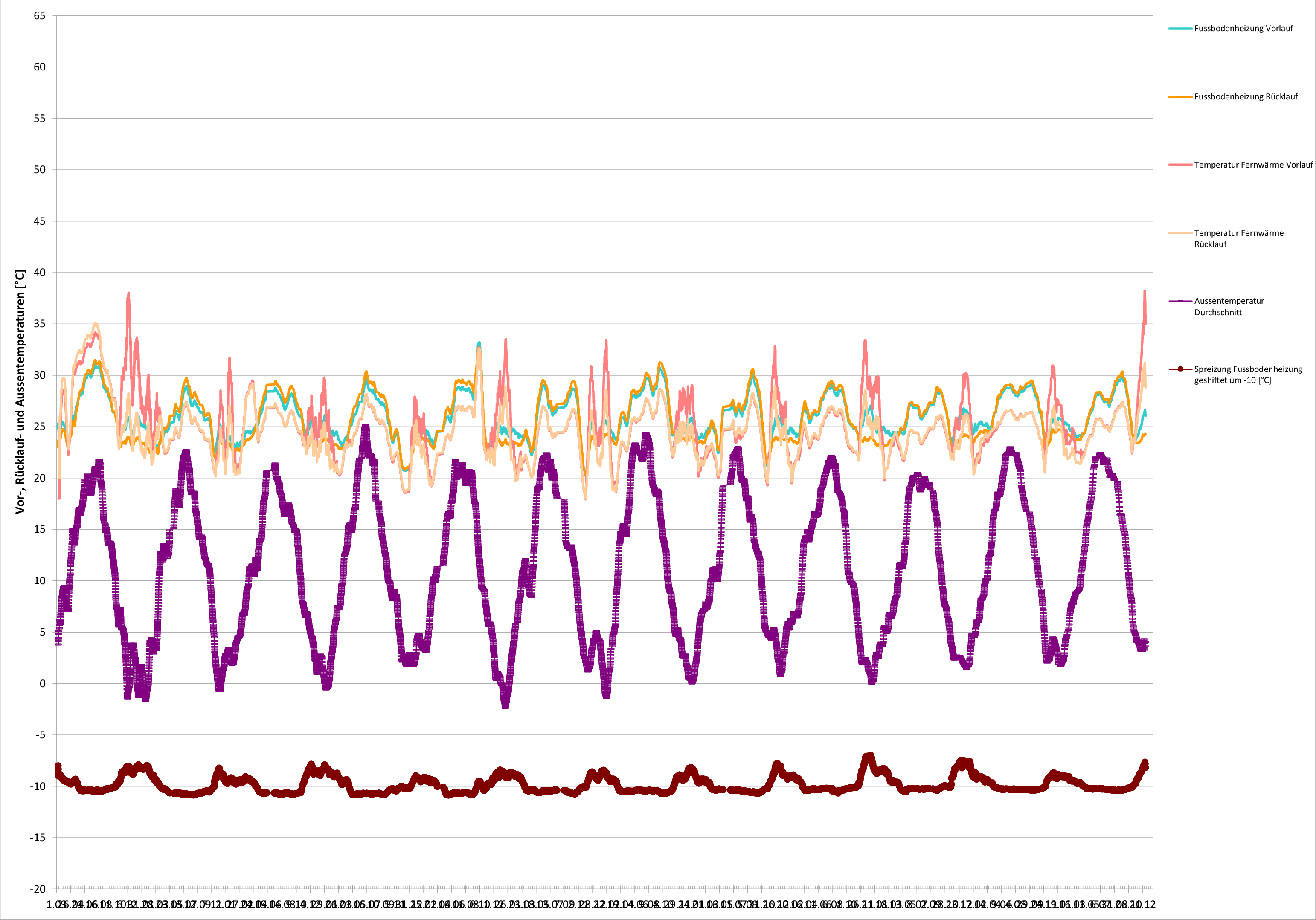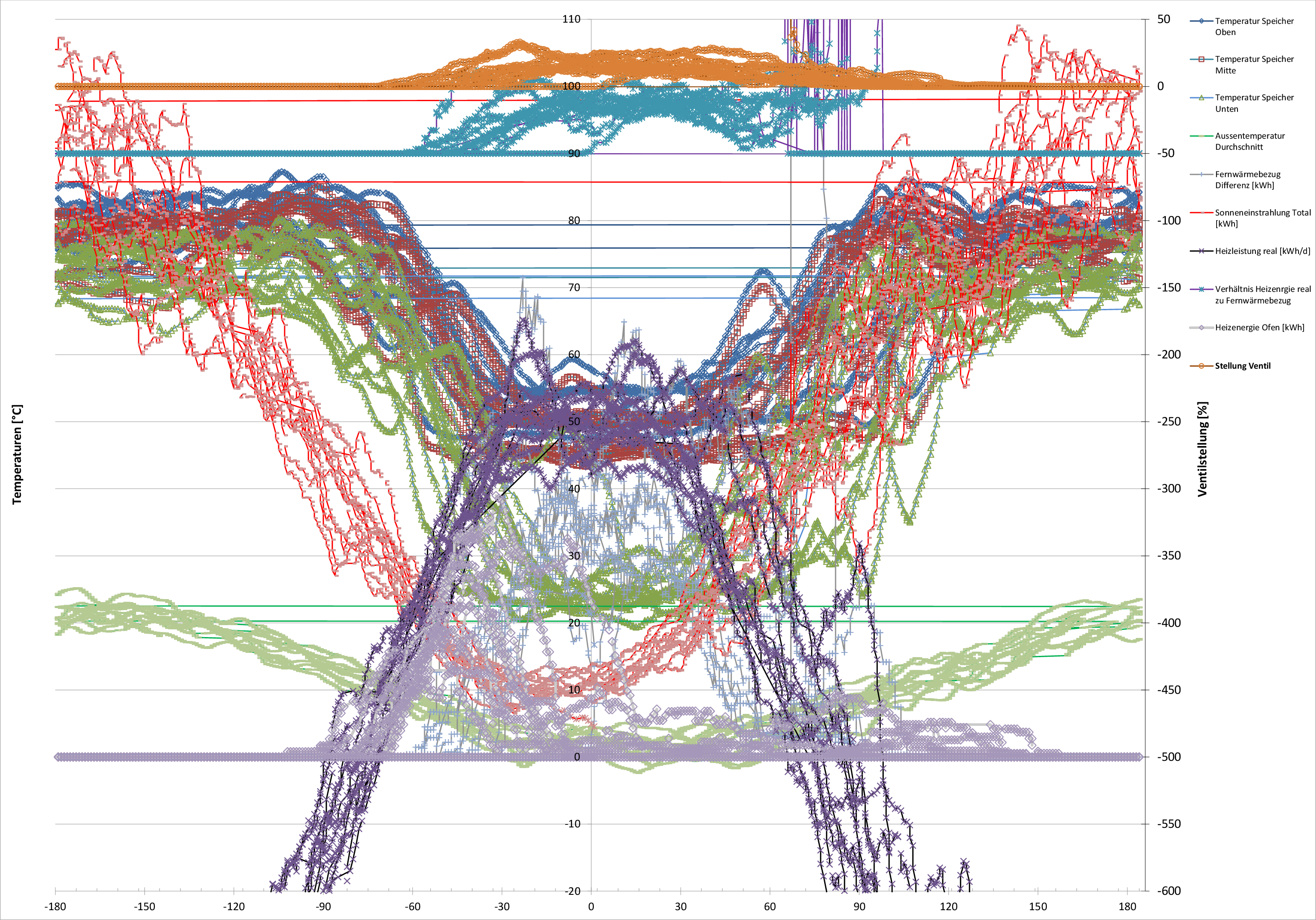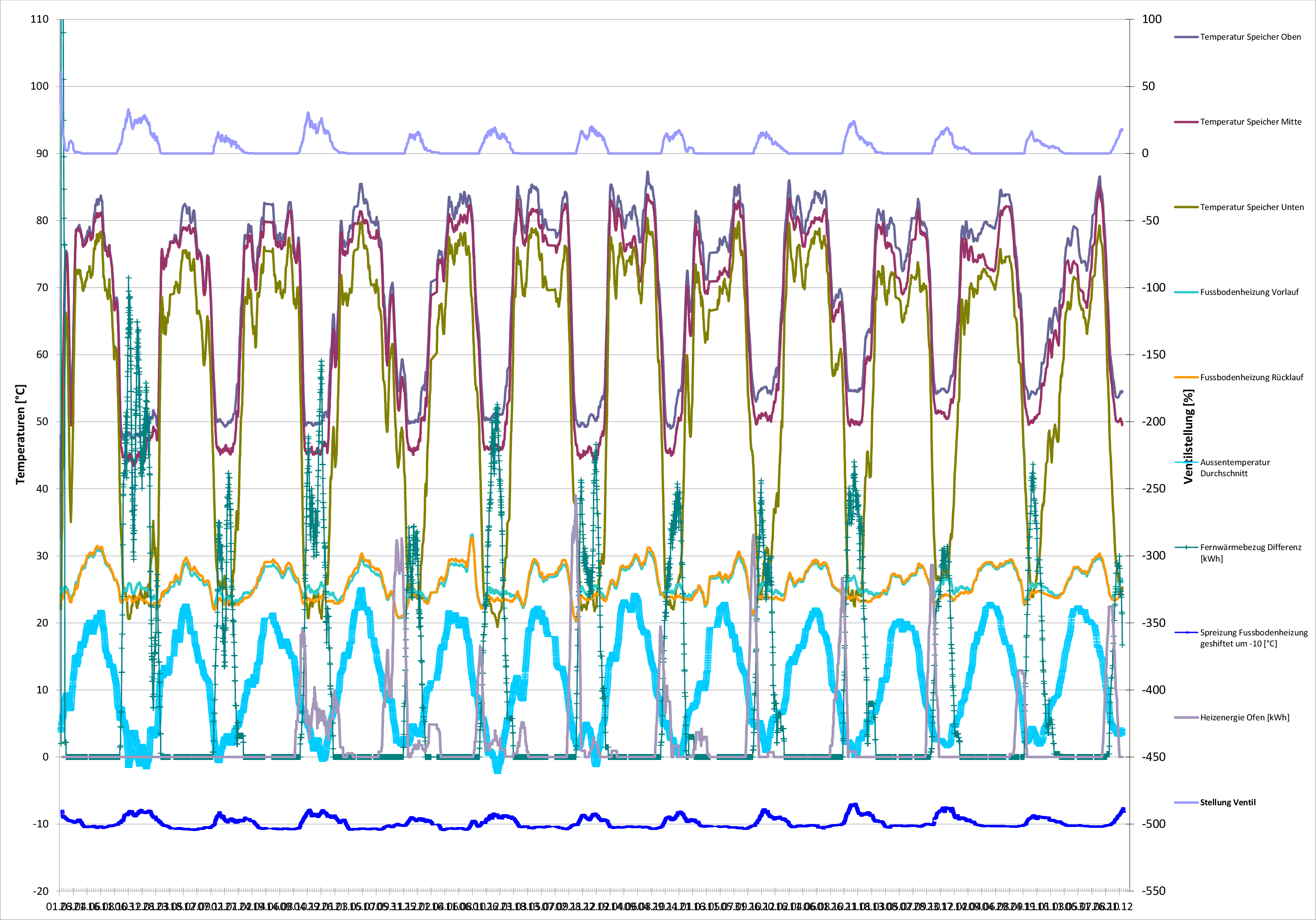 Temperaturen Speicher Energiebezug Fernwärme Sonneneinstrahlung gemittelt